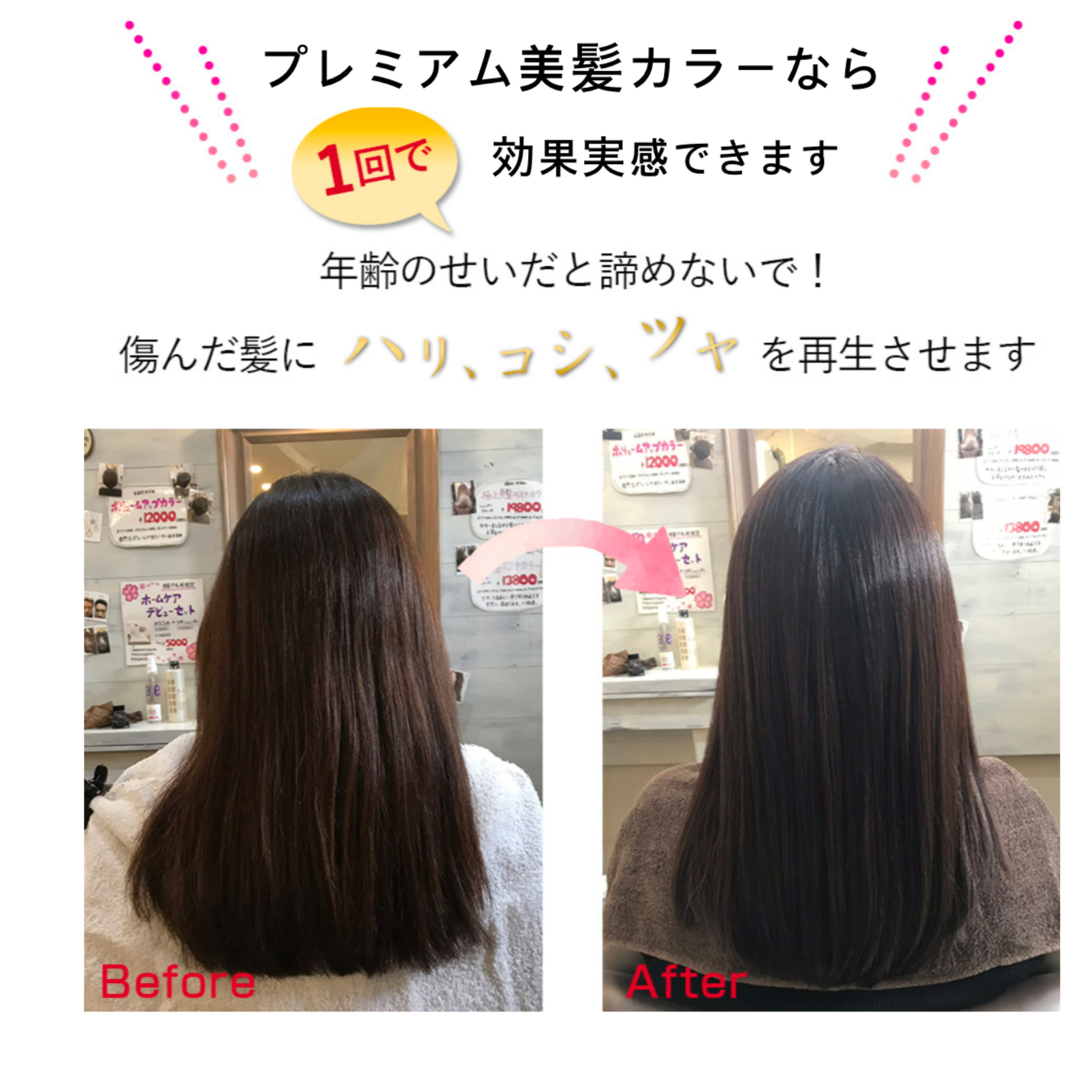 👉 「傷ませない準備」をしてからカラーに入るのがプレミアム美髪カラーの特徴です。
