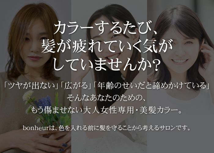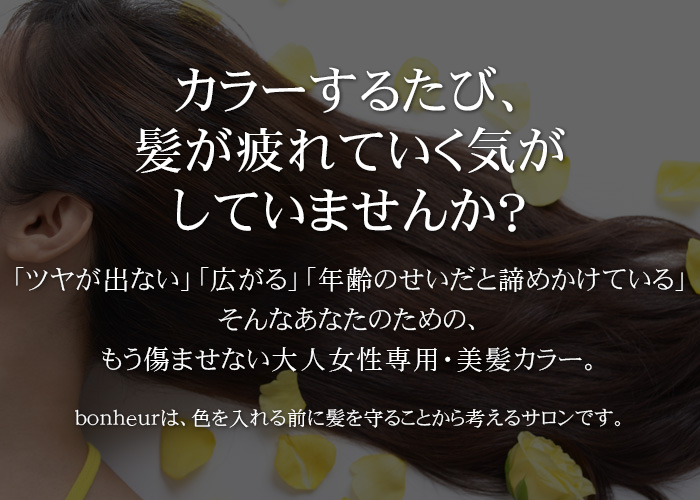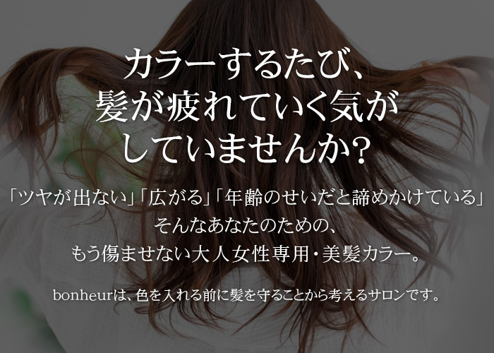 ボヌールが大切にしているのは 「今だけ」ではなく「これからの髪」 ボヌールでは、ただカラーをする・トリートメントをするのではなく